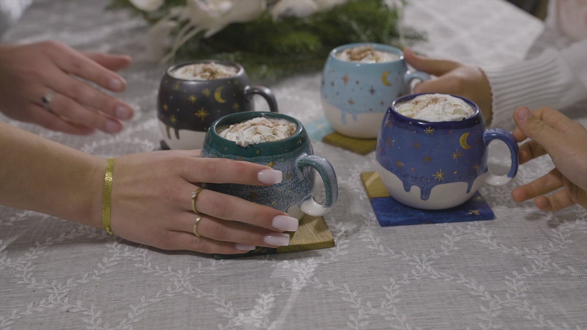 This set is a complete work of art! Our team of artists are challenged to make every piece collapse in your memory, and as soon as you receive them penetrate deep into your artistic soul. Set of mugs and coasters meticulously, handmade by wood craftsmen and pottery artists. The elegant dripping glaze in a vibrant colors combined with the extraordinary wooden, epoxy resin coaster in the same shade create not only an unbreakable whole, but a unique display of artwork. Because of the delicate and unpredictable kiln process no two mugs are ever manufactured the same. What's more every little lustre detail is hand painted with 24k gold, what provides your set to be authentically one in a billion, just like you! Whether it's for a special dinner, or simply enjoying your daily coffee; these original looking sets are guaranteed to stand out on any given table. These are made to last a lifetime!